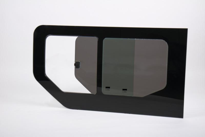 Baie, latérale milieu coulissante en verre spécialement développée pour les fourgons RENAULT TRAFIC à  partir de l'année 2015