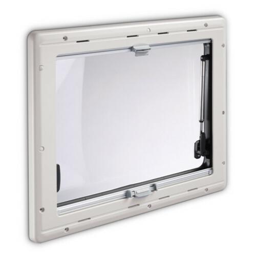 Baie structurée Dometic S4 en polyuréthane avec contre cadre équipé d'un store enrouleur intégré et d'une moustiquaire pour camping-cars, fourgons aménagés et caravanes.