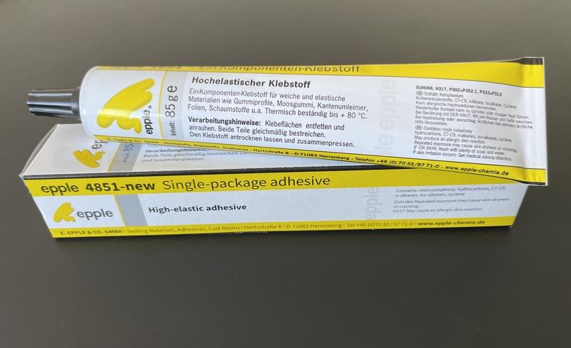 - Adhésif hautement élastique pour les matériaux mous et élastiques, tels que les profilés en caoutchouc,