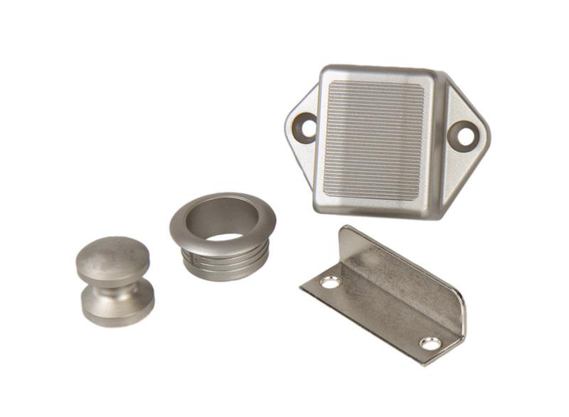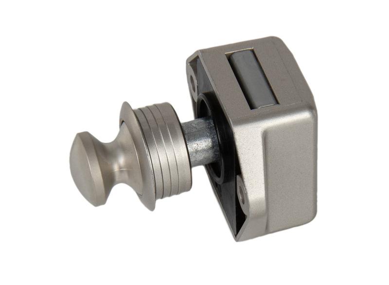 Ensemble complet de serrures pour meubles Push-Lock MINI avec gâche pour une utilisation dans les camping-cars ou les caravanes.