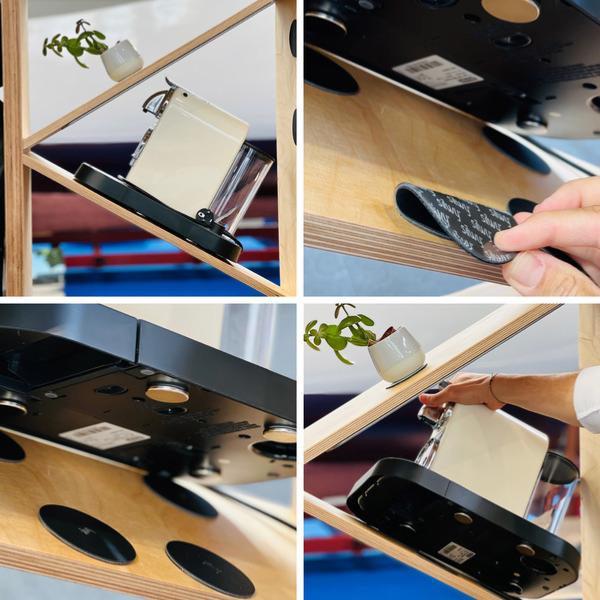 Il suffit de retirer le film de protection, de "coller" le pad, et vous pouvez ensuite attacher des aimants ou des crochets sur le support.