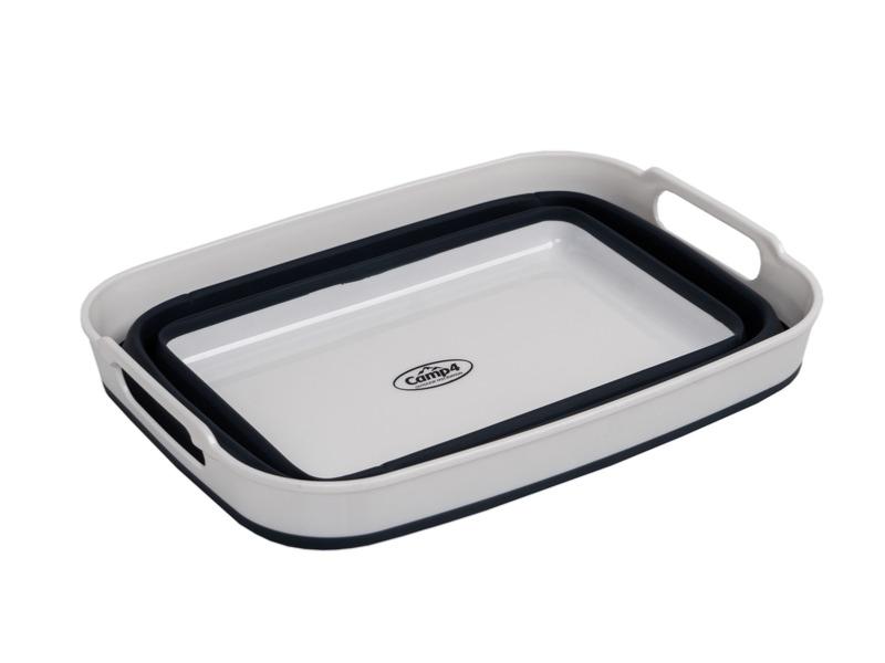 La cuvette pliable de chez CAMP4 est fabriqué en silicone et plastique et permet d'être replié entièrement pour un encombrement minimum une fois vidé et stocké à bord du camping-car ou du bateau. Cet accessoire peut être utilisé comme bassine ou comme coffre de rangement.
