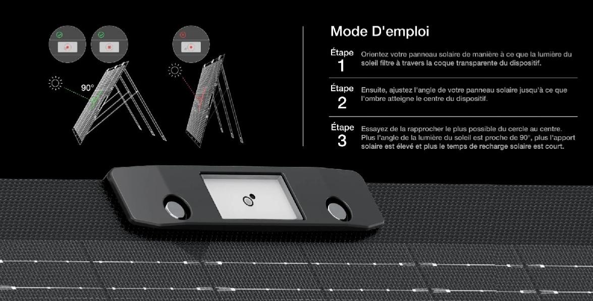 Grâce à un inclinomètre solaire et à un support intégrés, vous pouvez ajuster l'angle d'inclinaison du panneau de 30° en quelques secondes pour capter le plus de soleil possible à tout moment.
