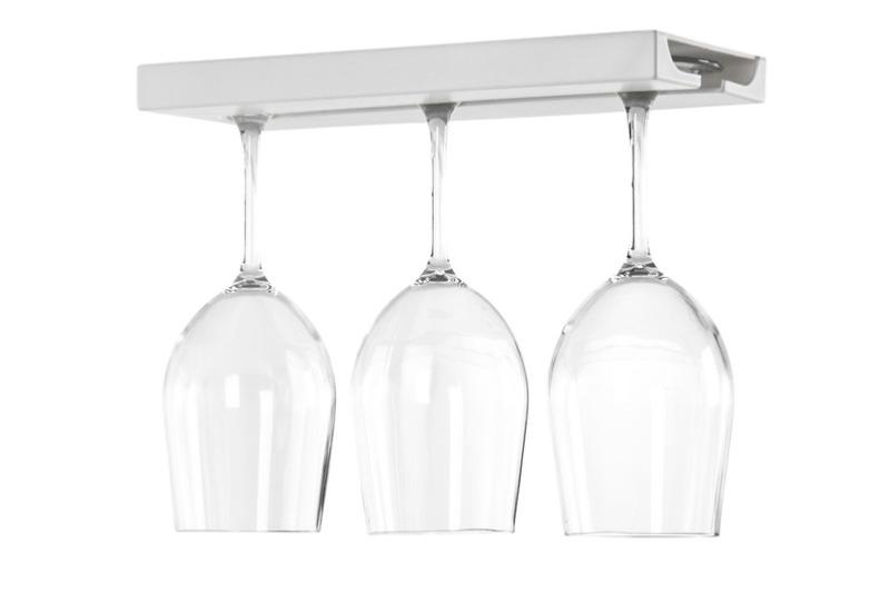 Ce support de verre à pied CAMP4 permet de suspendre jusqu'à 3 verres à pied avec une base de Ø 86 mm. Fabriqué en plastique de couleur blanc ou noir selon le modèle choisi, il se colle dessous une étagère par exemple, grâce à la colle fournie. Accessoire idéal pour décorer la cuisine de votre fourgon, camping-car ou bateau.