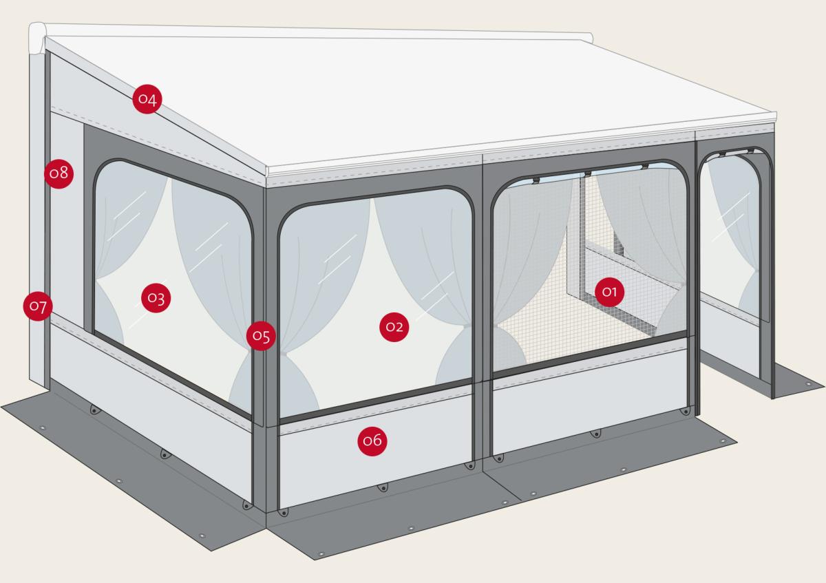 Les auvents Privacy seront conçus avec un tout nouveau tissu aux caractéristiques techniques plus performantes et la porte bénéficiera de finitions particulières pour une étanchéité supérieure. Nouveaux rideaux et nouveau design pour le sac de rangement complètent le restylage.