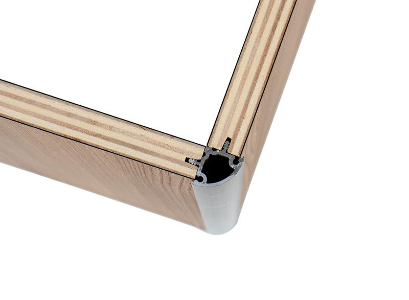 Les panneaux de bois s'installent facilement dans les coins argentés en aluminium piqué et retenu par la denture, un vissage n'est pas nécessaire.