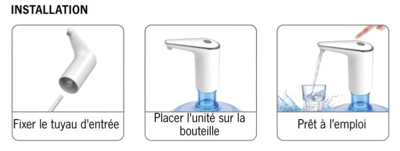 Dimensions : L 144 x l 65 x H 151 mm, tuyau d'arrivée d'eau de 50 cm et câble de charge inclus.