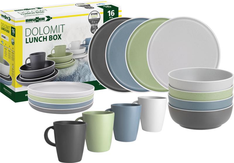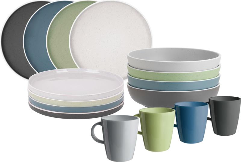 Lot de vaisselle en mélamine en couleurs assorties pour 4 personnes Dolomite BRUNNER