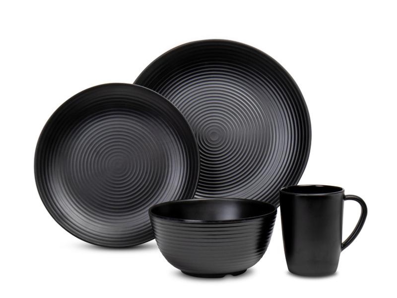 Set de vaisselle en mélamine LUND 16 pièces, pour 4 personnes, Noir