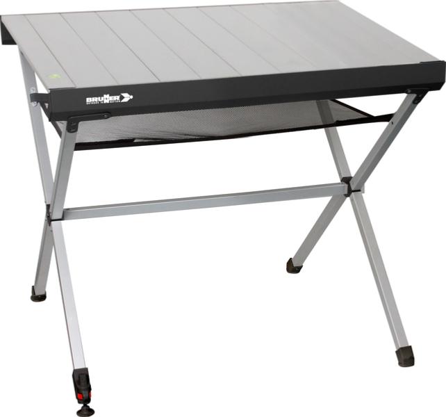 Table en aluminium avec plateau roulant et cadre pliant spécial, facile à installer.